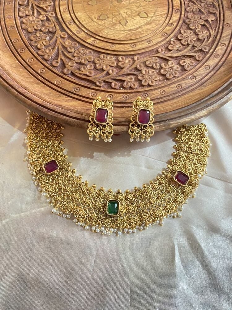Matt finish chain which comes with a pair of earrings perfect for occassion