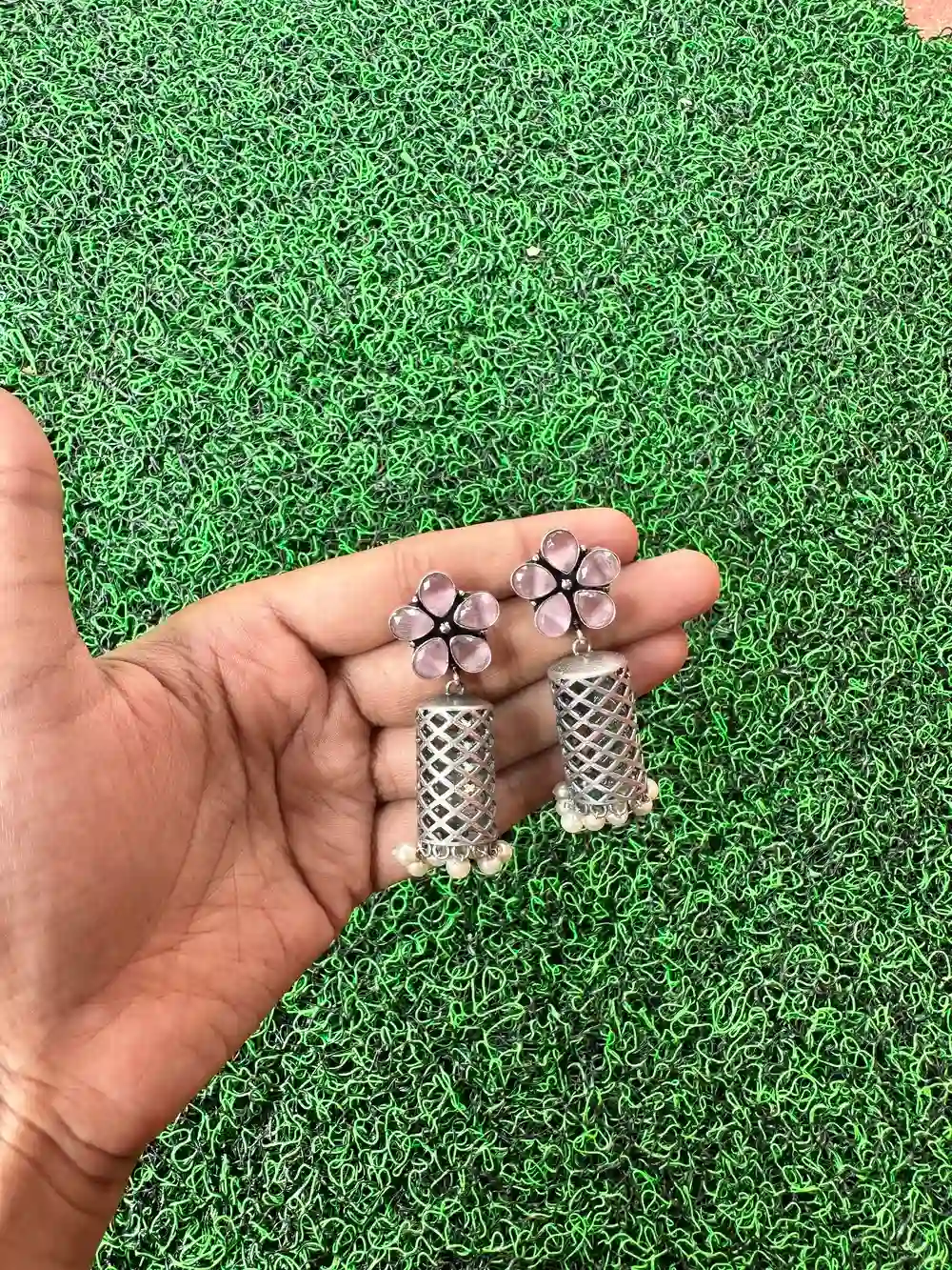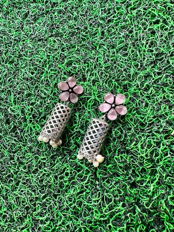 Pastel pink oxidised jumka to enhance your party look
