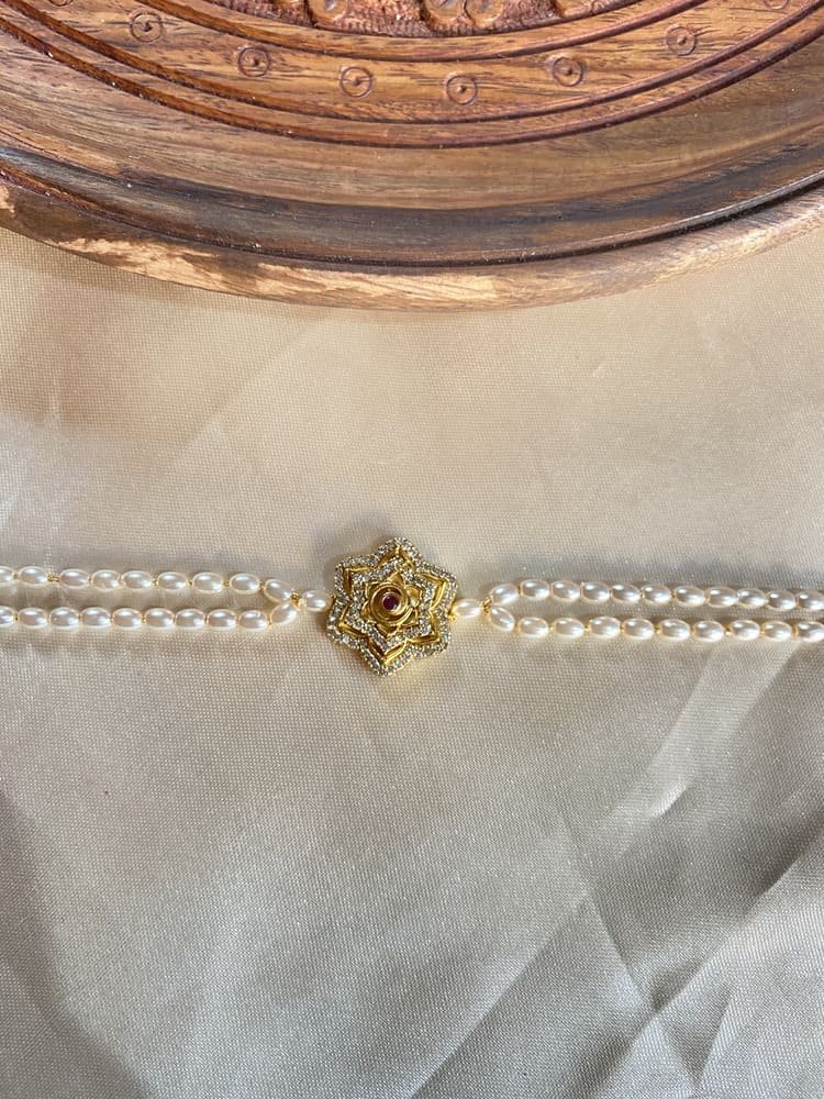Matte finished the chic neck hugging choker set embelished with the stones.
