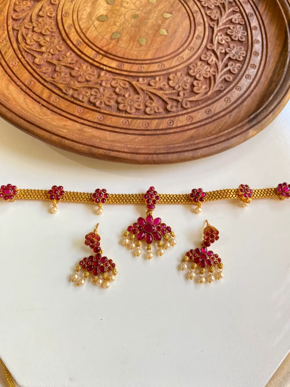 Matte finished the chic neck hugging choker set embelished with the stones.This piece of beauty comes with a pair of cute earrings